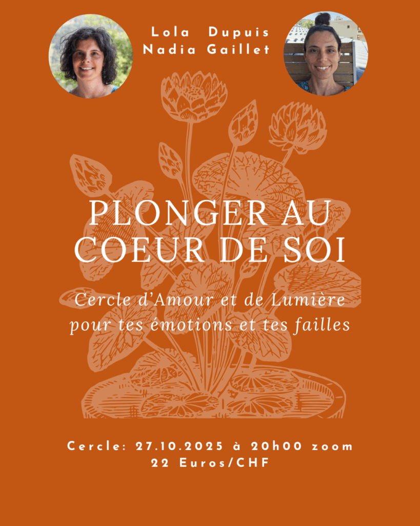 Je suis en joie de vous partager ce nouvel élan du COEUR cocréé avec Lola Dupuis un Cercle d’Amour et de Lumière pour tes émotions et tes failles. Le premier Cercle aura lieu le 27.10.2025 à 20h00 en ligne. Inscrivez-vous auprès de moi.